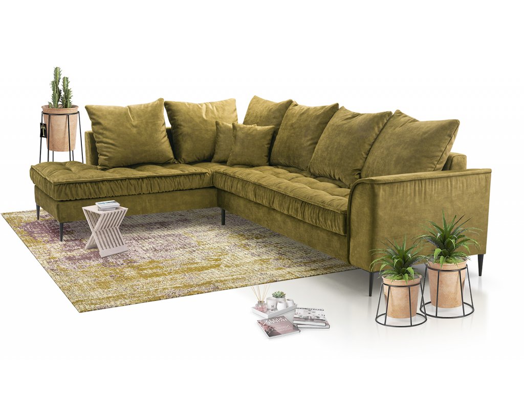 Polštáře jsou velmi pohodlnou součástí sedacích souprav. Jejich velké množství symbolizuje dokonalý relax. Sedací souprava Lidie je tedy pro ty, kteří si rádi užijí relax nejen po náročném dni, skvělou volbou. Její vzhled zaujme každou návštěvu. Prošívání sedáku a kovové nožky sedací soupravě přidává na eleganci. Všechny polštáře jsou volně ložené a můžete je přizpůsobit svému pohodlí. Výplň sedáku tvoří pružiny typu faliste v kombinaci s pěnou T30 a HR 35/45. Sedací souprava je celočalouněná, takže ji můžete umístit do prostoru. Sedací souprava není rozkládací, ale po sejmutí polštářů, vznikne dostatečně velký prostor k občasnému přespání. Cena je uvedena za sedací soupravu včetně polštářů. Vyobrazené dekorace nejsou v ceně. Sedací soupravu nabízíme v levém, nebo pravém provedení.