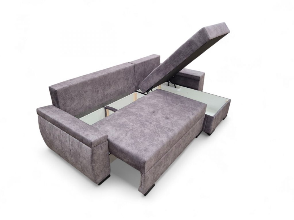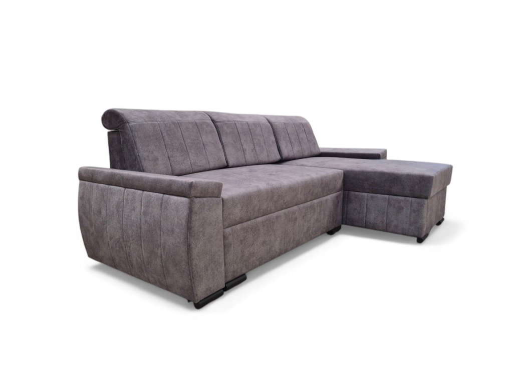 Sedací souprava je krásným elegantním kouskem s nádechem retro designu a výborně zapadne do každého interiéru. Její velkou předností je univerzální možnost sestavení. Tzn. že podle potřeby můžete mít levou nebo pravou stranu, což je výhoda při zařizování obývacího pokoje. Nemusíte přemýšlet do jakého rohu sedací soupravu postavíte a jednoduše si ji podle potřeby přizpůsobíte. Výhodou je také vysoký komfortní posed 48 cm a plocha po rozložení 205 x 125 cm, samozřejmostí je i nepostradatelný úložný prostor. Jednoduchým rozložením pomocí automatu vznikne dostatečně prostorné lůžko k občasnému přespání Vaší návštěvy. Výplň sedáku tvoří vlnité pružiny v kombinaci s pružinami bonell a kvalitní PUR pěnou. Sedací souprava je celočalouněná, takže ji můžete umístit i do prostoru. Výborně se hodí do obývacího pokoje, do pracovny či pokoje pro hosty. Sedací souprava bude dodána v potahové látce Salvador 15 - vzorek je vyobrazen na poslední doplňkové fotografii.
