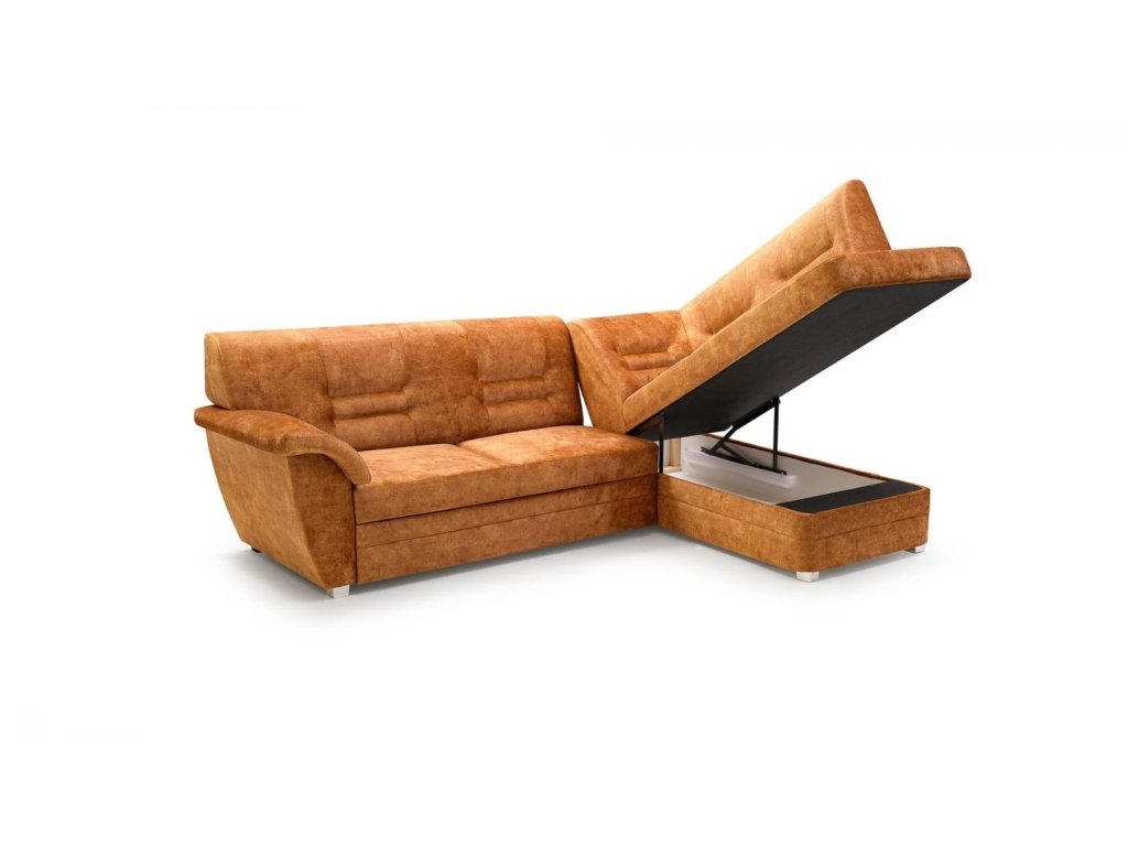 Moderní, rohová sedací souprava Dornia je rozkládací. Jednoduchým rozkladem vzniká lůžko vhodné k příležitostnému spaní. Má uložný prostor, který lze využít například na lůžkoviny. Sedací souprava je pružinová v kombinaci s kvalitní PUR pěnou. Je celočalouněná a je možno ji umístit také do prostoru. Na úvodním obrázku je sedací souprava vyobrazena v pravém provedení. Správná barva je zobrazena na první fotografii. Ostaní fotografie jsou pouze ilustrační. Vyobrazené doplňky a dekorace nejsou v ceně.