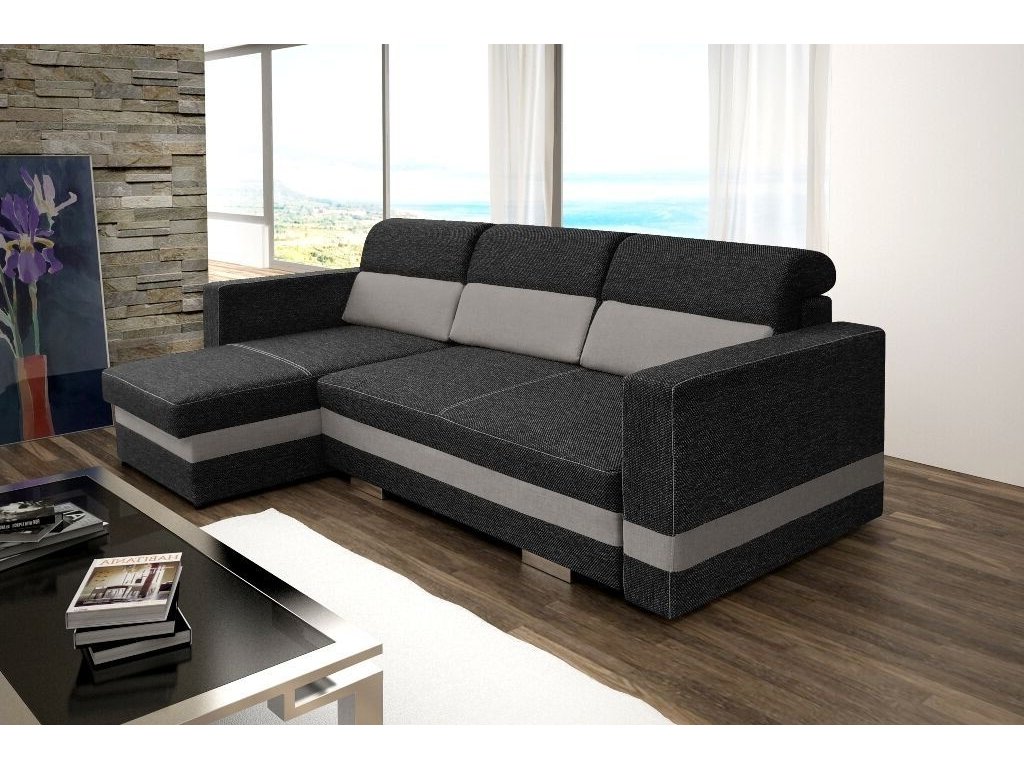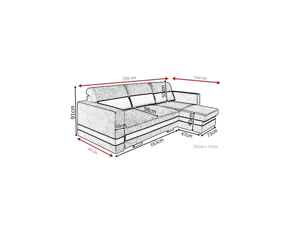 Elegantní rohová sedací souprava Rimini je rozkládací a má také 2 praktické úložné prostory. Díky svým rozměrům je vhodná i do menších pokojů. Jednoduchým rozložením pomocí automatu, vznikne dostatečně velké lůžko vhodné k příležitostnému spaní. Výplň sedáku tvoří kombinace pružin bonell s kvalitní PUR pěnou. Tato kombinace zajistí velmi pohodlné sezení. Sedací souprava je potažena kvalitní látkou v kombinaci 2 barev, a to v několika odstínech. V ceně sedací soupravy jsou 3 velké opěrné polštáře. Ostatní vyobrazené dekorace nejsou v ceně.