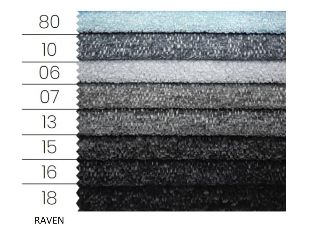 Raven– extrémně měkkým povrchem, který vytváří trojrozměrný a melírovaný efekt. Odolná proti blednutí a žmolkování zajišťuje, že materiál zůstane ve tvaru po dlouhou dobu.