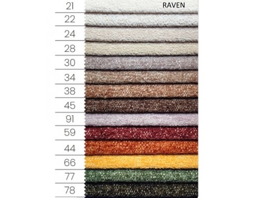 Raven– extrémně měkkým povrchem, který vytváří trojrozměrný a melírovaný efekt. Odolná proti blednutí a žmolkování zajišťuje, že materiál zůstane ve tvaru po dlouhou dobu.