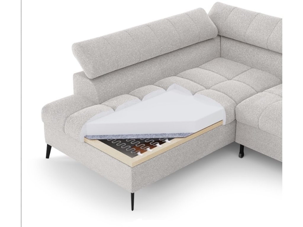 Luxusní bohatě prošívaná rohová sedací souprava Vincet s polohovatelnými záhlavci se hodí nejen do moderního interiéru. Sedací souprava je pohodlná díky hlubokému sedáku vyplněný WAVE SPRING s vysokou flexibilitou, která zaručuje komfort. Její předností je také velký úložný prostor a spací plocha. Sedací souprava je celočalouněná v látce MISTERIO.