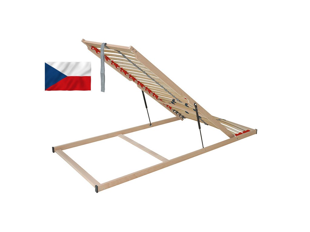 Lamelový rošt ze dřeva v šíři 80 cm. Rošt má 28 lamel v pružných kaučukových pouzdrech ( kaučukové výkyvné duo kapsy na kolíku ). U hlavy jsou 4 ks pevných lamel, další část se dá zvednout. Rovnoměrně rozkládá váhu těla na plochu matrace, obsahuje posuvné objímky pro individuální nastavení tuhosti v bederní oblasti ( 5 výztuh ). Obsahuje také středový popruh pro zlepšení stability roštu. Nosnost roštu je 120 kg. Rošt je výklopný pomocí plynových pístů. Vhodný k postelím s úložným prostorem, kde vkládáte věci od nohou.Doplňkové parametry