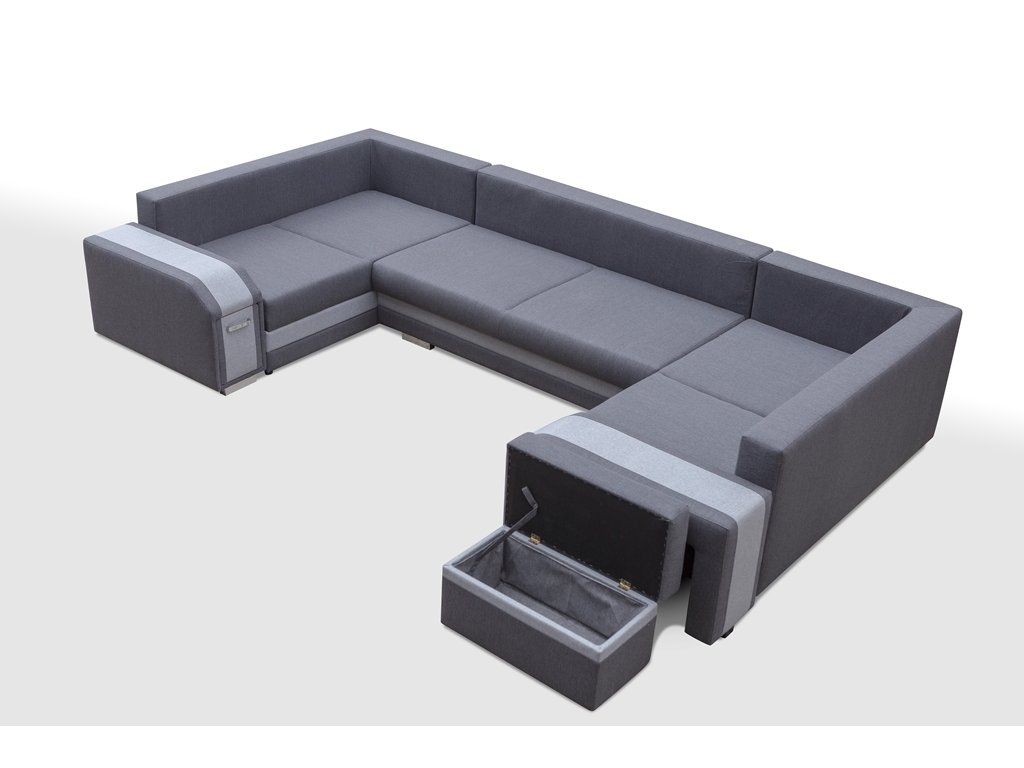Sedací souprava Association ve tvaru U, osloví každého, kdo preferuje moderní vzhled a zároveň pohodlí a praktičnost. Sedací souprava je velmi pohodlná a dostatečně velká na posezení s přáteli, nebo rodinou. Pro případ, že se návštěva zdrží přes noc, je sedací souprava vybavena rozkladem. Pomocí automatu jednoduše sedací sopuravu přeměníte v prostorné lůžko. Sedací souprava má 3 praktické úložné prostory a další úložný prostor najdete v područi, kde je důmyslně ukrytý bar a také v taburetu. Výplň sedáků tvoří kombinace pružin faliste s kvalitní PUR pěnou. Návod na rozložení můžete shlédnout v krátkém gifu, který najdete v doplňkových fotografiích, kde také najdete fotografii s detailními rozměry. Sedací soupravu nabízíme v kvalitní potahové látce se zajímavým lemováním, a to v několika barevných provedeních. Sedací soupravu nabízíme v levém i pravém provedení, nebo také v prodedení do L. Sedací souprava bude dodána v kombinaci potahových látek, která je vyobrazena na úvodní fotografii. Vyobrazené dekorace nejsou v ceně.