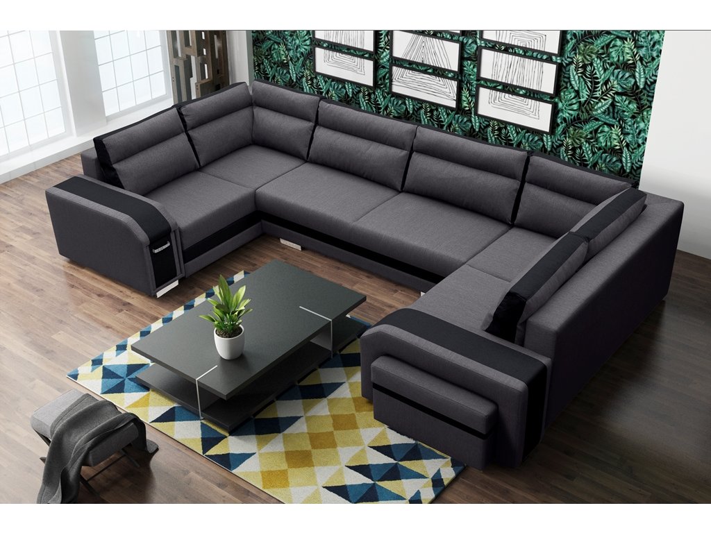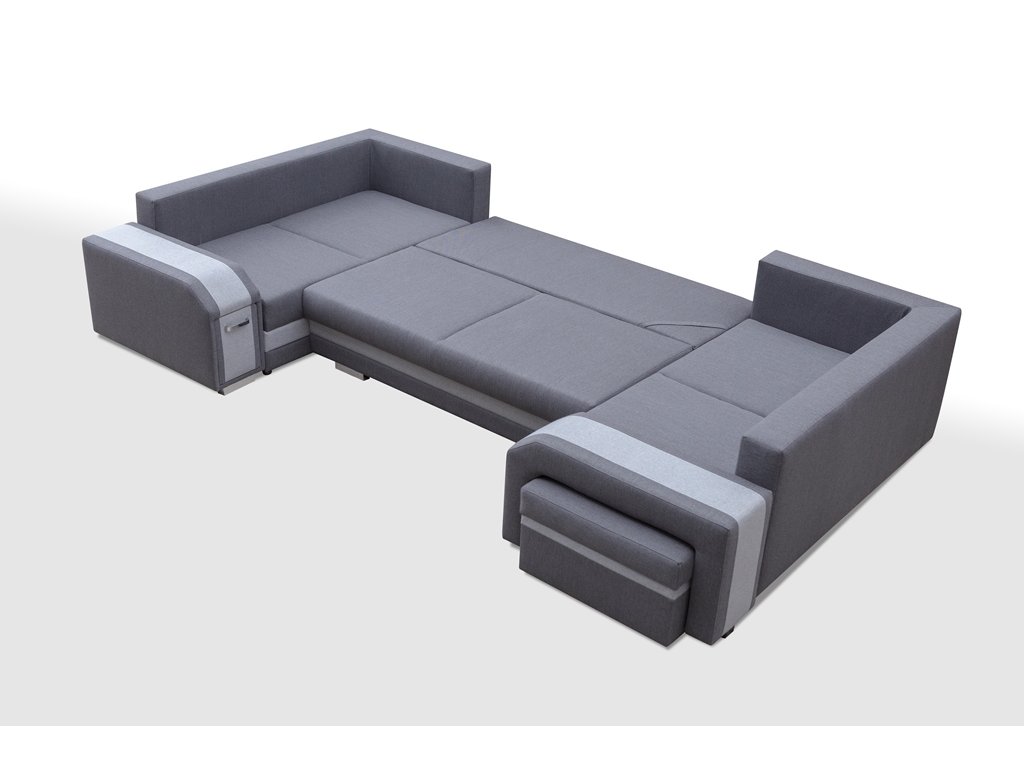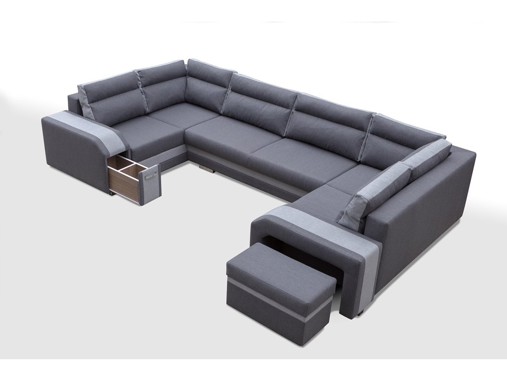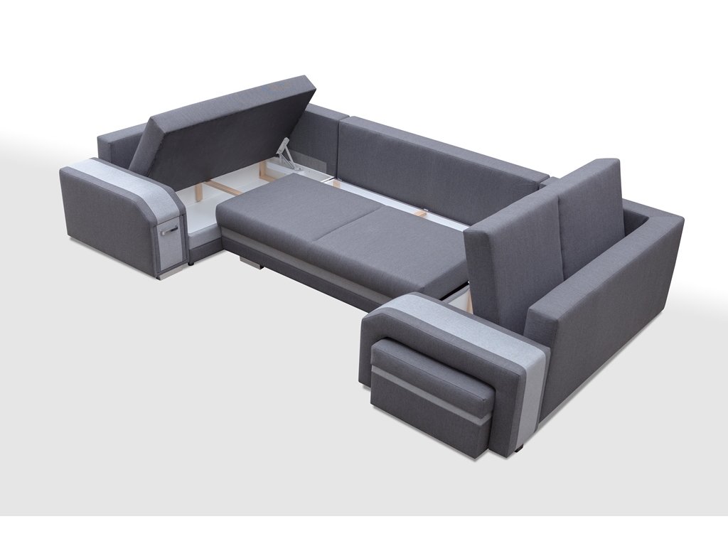 Sedací souprava Association ve tvaru U, osloví každého, kdo preferuje moderní vzhled a zároveň pohodlí a praktičnost. Sedací souprava je velmi pohodlná a dostatečně velká na posezení s přáteli, nebo rodinou. Pro případ, že se návštěva zdrží přes noc, je sedací souprava vybavena rozkladem. Pomocí automatu jednoduše sedací sopuravu přeměníte v prostorné lůžko. Sedací souprava má 3 praktické úložné prostory a další úložný prostor najdete v područi, kde je důmyslně ukrytý bar a také v taburetu. Výplň sedáků tvoří kombinace pružin faliste s kvalitní PUR pěnou. Návod na rozložení můžete shlédnout v krátkém gifu, který najdete v doplňkových fotografiích, kde také najdete fotografii s detailními rozměry. Sedací soupravu nabízíme v kvalitní potahové látce se zajímavým lemováním, a to v několika barevných provedeních. Sedací soupravu nabízíme v levém i pravém provedení, nebo také v prodedení do L. Sedací souprava bude dodána v kombinaci potahových látek, která je vyobrazena na úvodní fotografii. Vyobrazené dekorace nejsou v ceně.