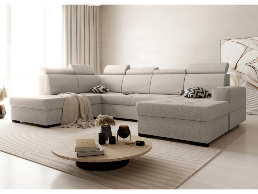 Moderní rohová sedací souprava Alex U kombinuje moderní design a vysokou funkčnost. Její předností jsou nastavitelné opěrky hlavy , které umožňují maximální pohodlí. Sedací souprava je rozkládací s úložným prostorem, která nabízí pohodlné místo na spaní. Celoučalouněný design umožňuje umístění soupravy jak do rohu, tak i do středu místnosti. Dostupná ve více barvách a je potažena vysoce kvalitní látkou Voss , která zaujme svou odolností a snadnou údržbou.