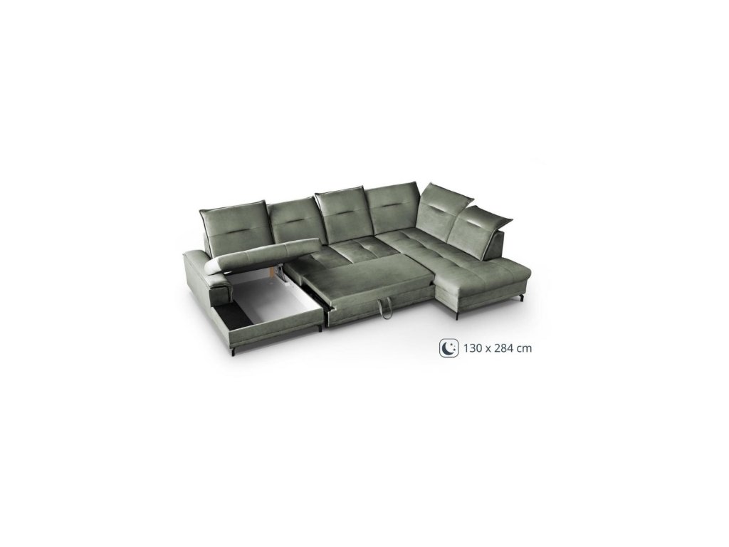 Moderní pohodlná sedací souprava Bruno U, která vyniká kvalitou a péčí o nejmenší detaily. Její předností je hluboký sedák a pohodlné opěradlo s polohovatelnými záhlavci ,které zaručují pohodlí. Sedačka má úložný prostor a po rozkladu dostaneme velkou lehací plochu. Sedačka je především velmi luxusní kousek. Sedačka je celočalouněná v látce Element.