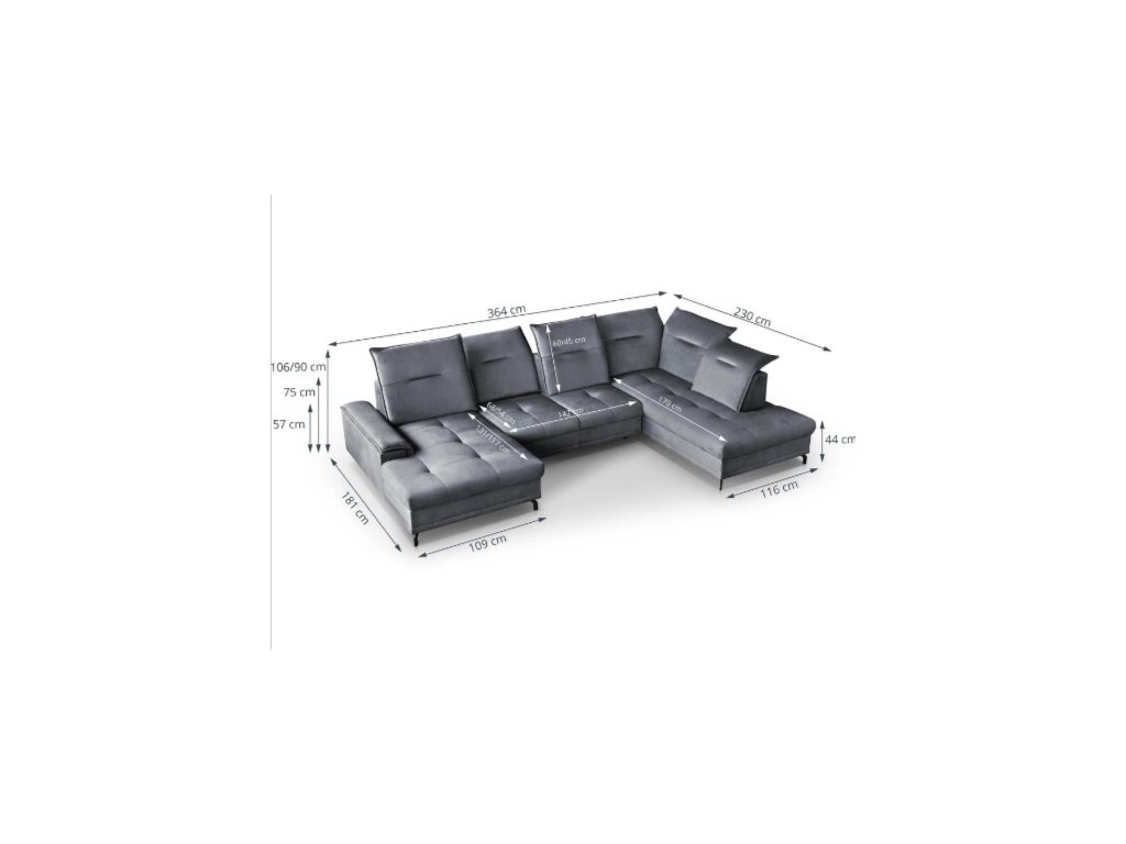 Moderní pohodlná sedací souprava Bruno U, která vyniká kvalitou a péčí o nejmenší detaily. Její předností je hluboký sedák a pohodlné opěradlo s polohovatelnými záhlavci ,které zaručují pohodlí. Sedačka má úložný prostor a po rozkladu dostaneme velkou lehací plochu. Sedačka je především velmi luxusní kousek. Sedačka je celočalouněná v látce Element.