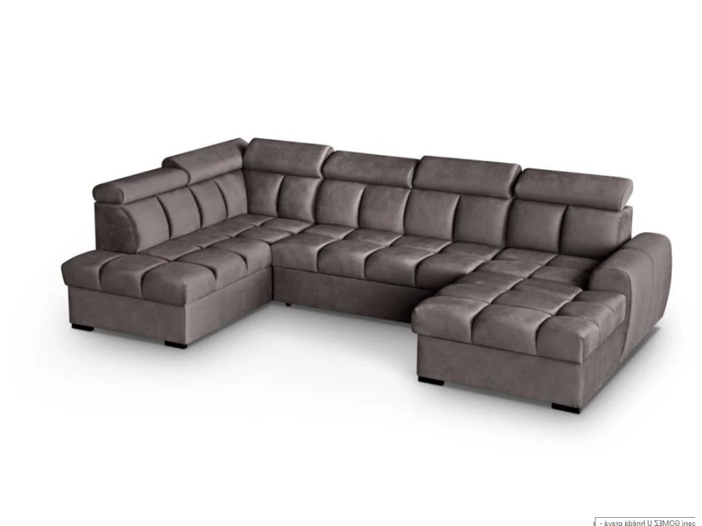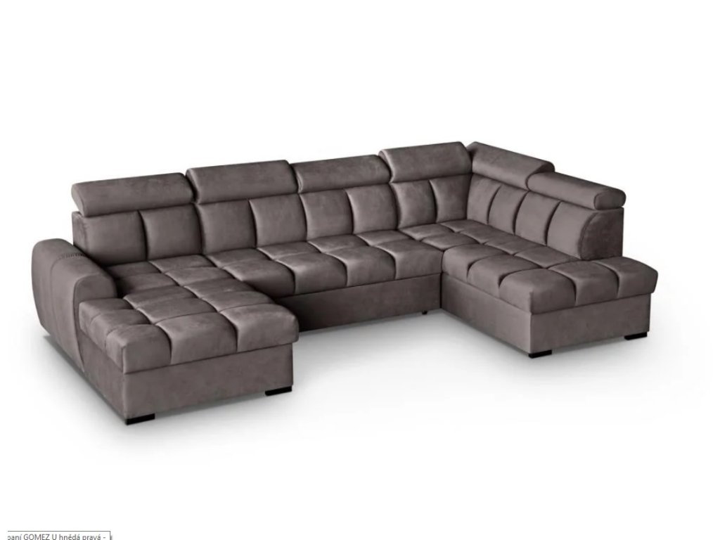 Elegantní a velice pohodlná sedací souprava Gomez do U s polohovatelnými záhlavci. Nechte se hýčkat elegantní celočalouněnou sedací soupravou Gomez , kterou můžete umístit do prostoru. Sedací souprava snadno navodí pocit domácí pohody s nádechem luxusu. Svou velikostí poskytne komfortní sezení díky výraznému prošívanému sedáku . Sedací souprava je rozkládací s funkcí DELFIN a má dva velké úložné prostory. Sedací souprava je čalouněná v látce Element.