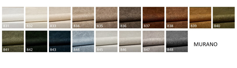 Murano - je potahové látka, která je příjemná na dotek. Látka vyznačující se odolností proti oděru a technologii Nanoblok