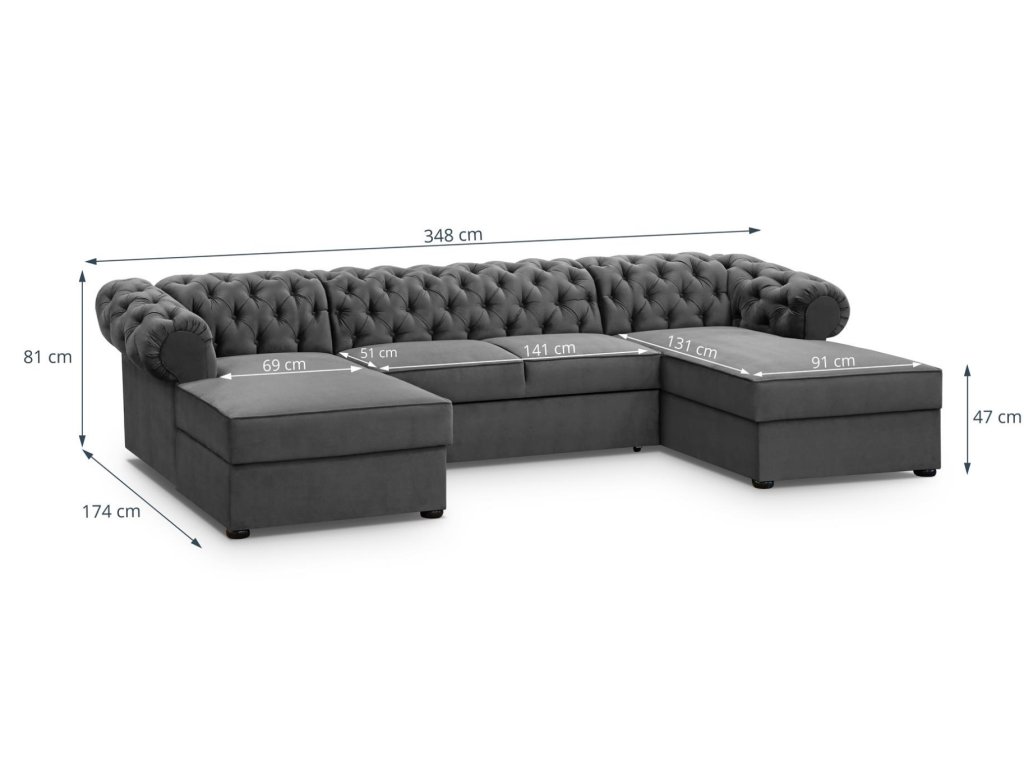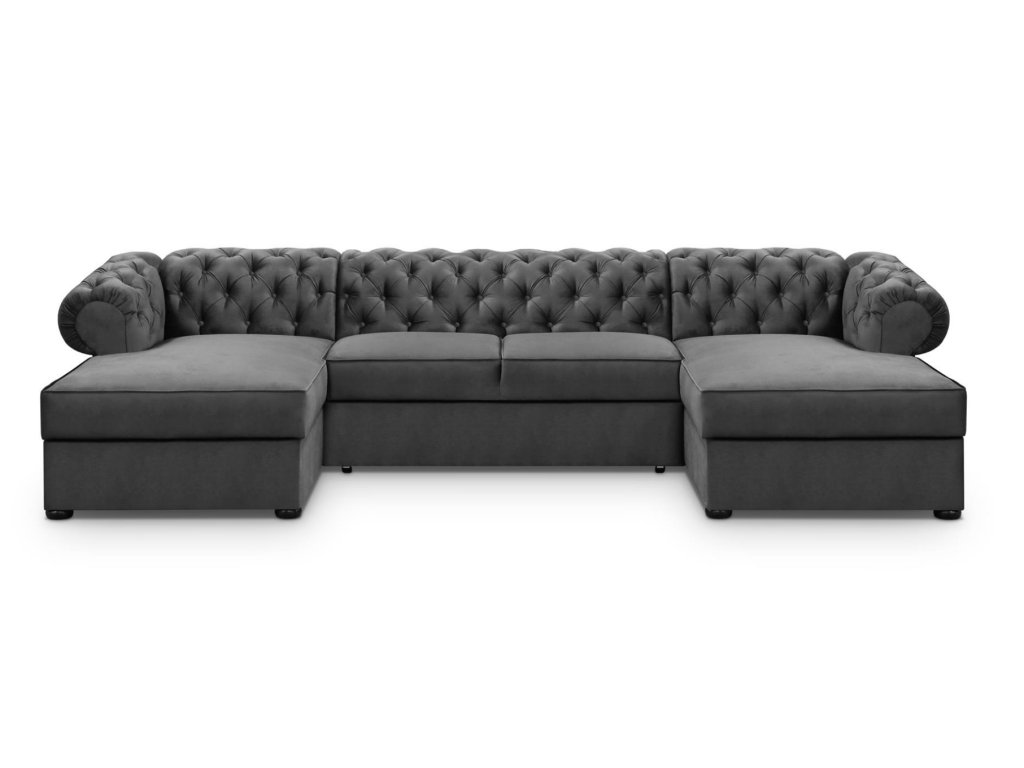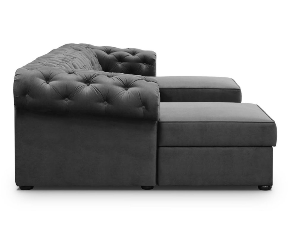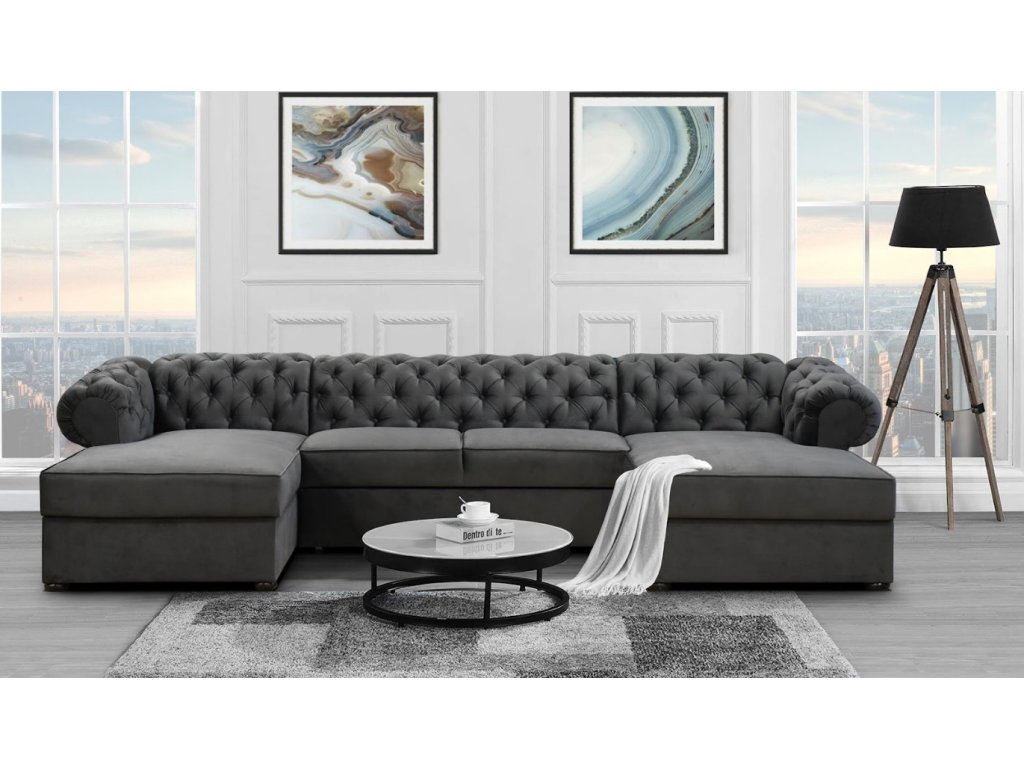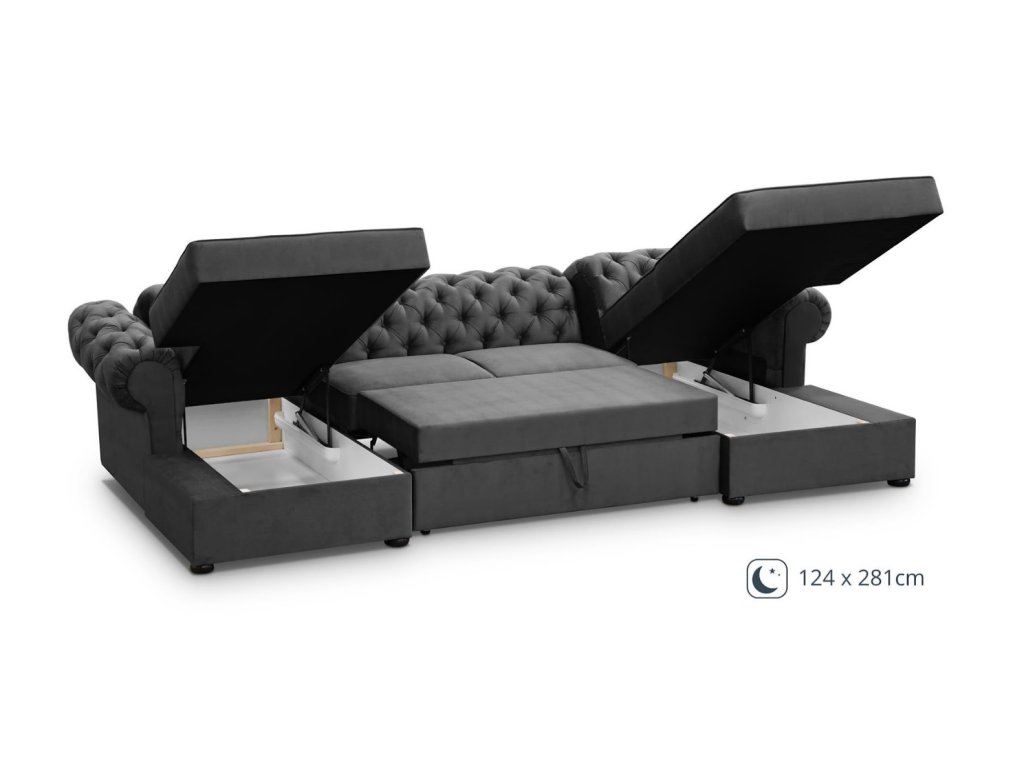 Sedací souprava Valentino U s typickým prošíváním pro styl Chesterfield - je rozkládací se dvěma úložnými prostory.