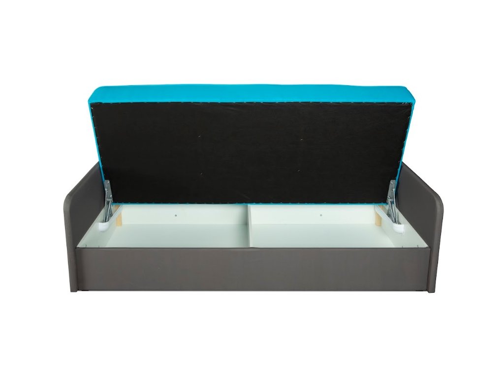 Pohovka neboli válenda není rozkládací, přesto nabízí praktický úložný prostor. Po odejmutí polštářů, které jsou součástí balení, vznikne pohodlná plocha na spaní o rozměrech 195 × 82 cm – ideální pro příležitostné přespání. Sedák je vyztužen kvalitními pružinami typu Bonell, které zajišťují dlouhou životnost a komfort při sezení.