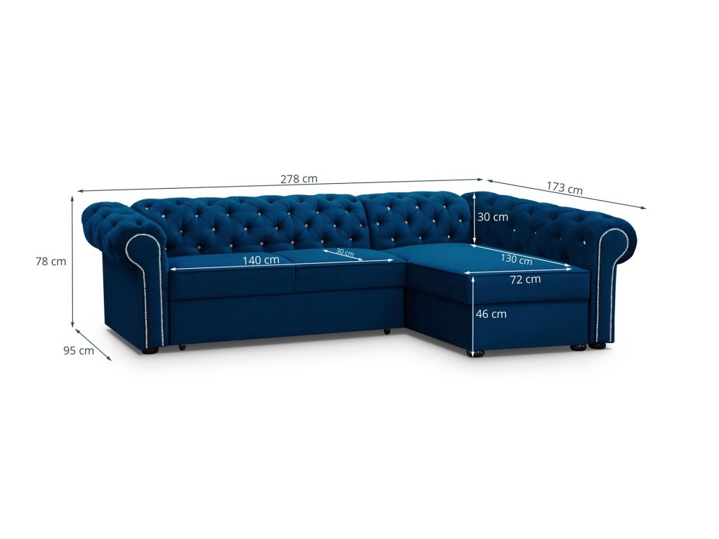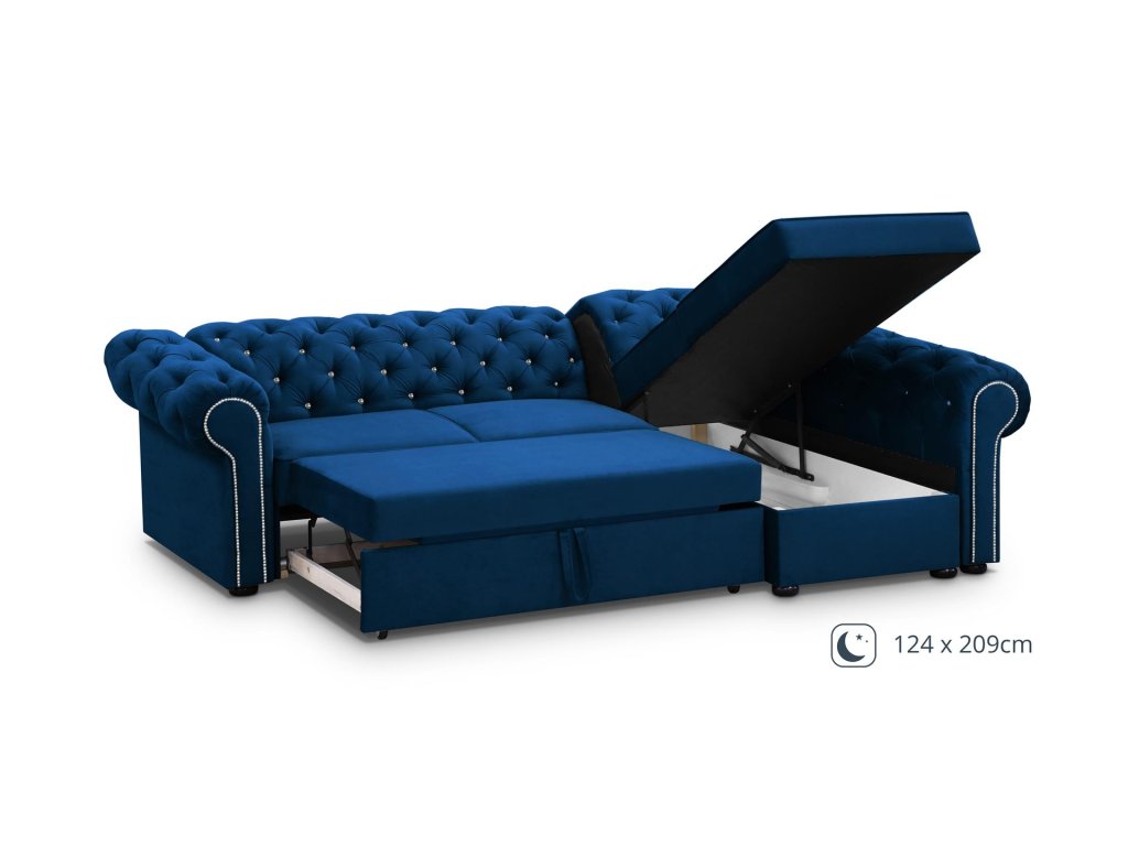 Svým prodlouženým provedením a použitými materiály zaručuje pohodlí i luxus a to nejen při sledování televize či při čtení knihy. Sedačka má propracované detaily a svým vzhledem do každého interiéru přinese elegantní nádech. Sedací část je vyplněna vysokoelastickou HR pěnou a rozkládacím systémem delfín. Celá sedačka je čalouněná s prošíváním. Dále si můžete zvolit, zda si přejete roh na pravé nebo levé straně.