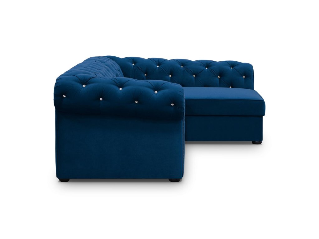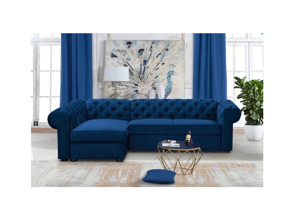 Sedací souprava Valentino s typickým prošíváním pro styl Chesterfield - je rozkládací a s úložným prostorem.