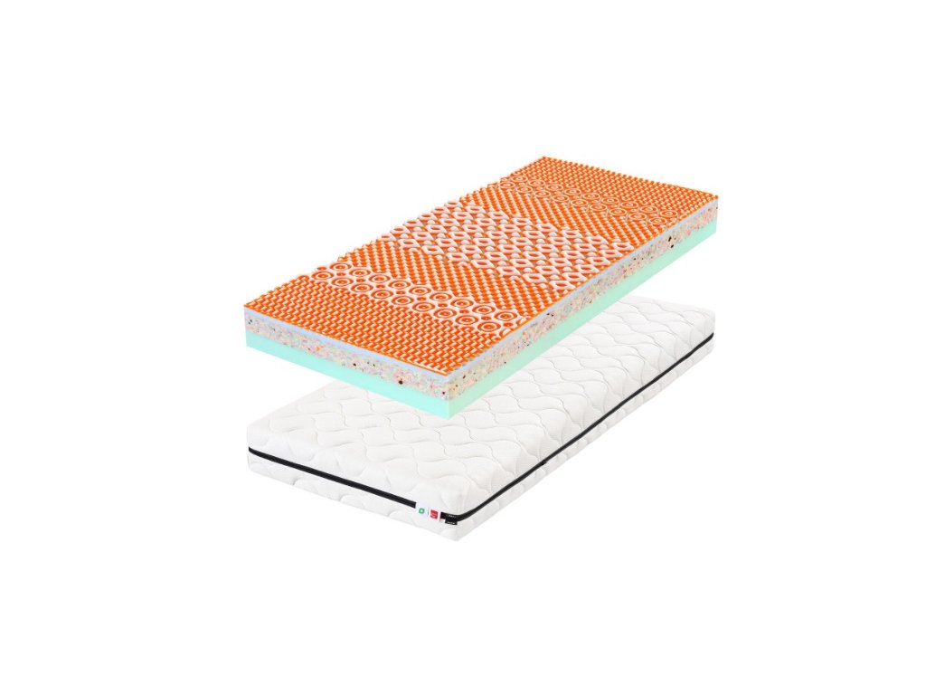 Střed matrace je vyroben z ekologické pěny Flexifoam Rekogreen, která je robustní, tuhá a odolná. Tato pěna je ekologická, vyrábí se z recyklovaných materiálů, a poskytuje matraci pevnou podporu a dlouhou životnost. Strana "klasik" je z masivní neprofilované Flexifoam pěny, která je pevná a prodyšná.