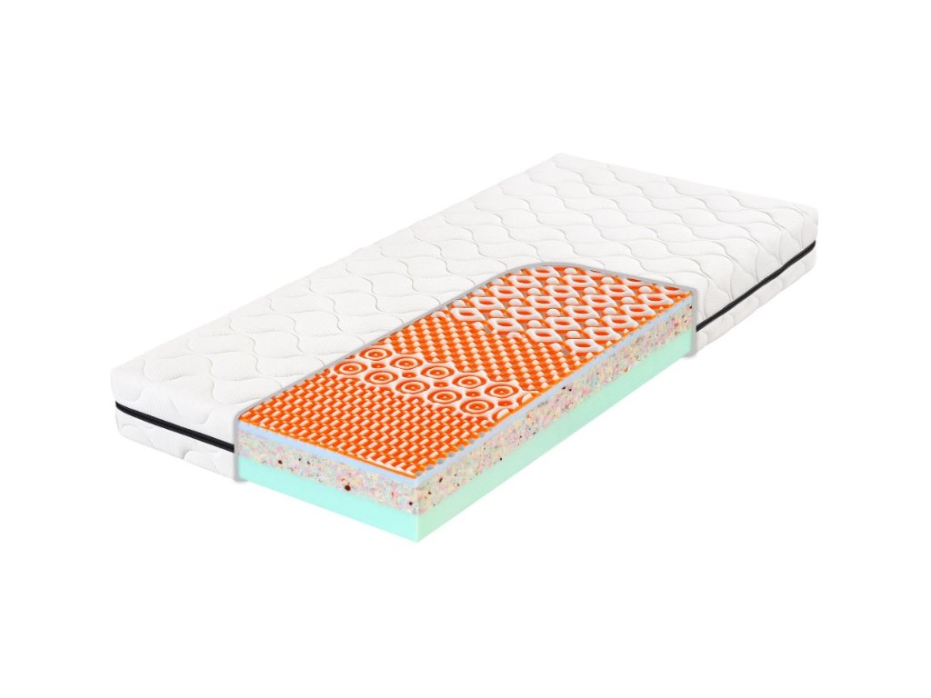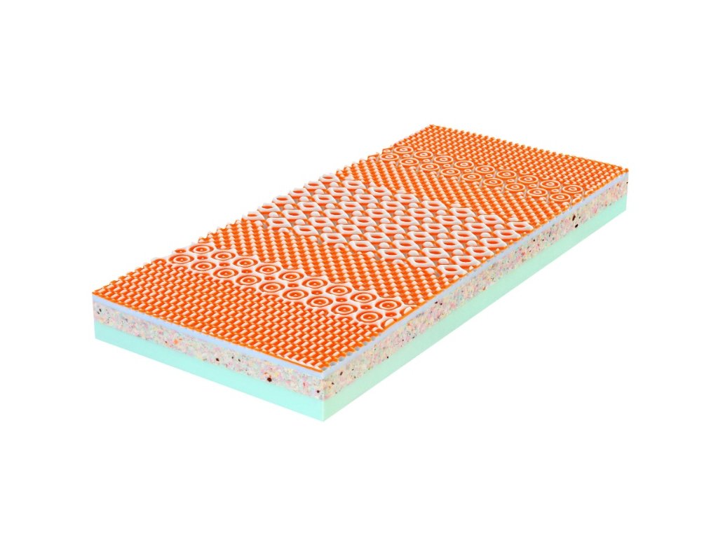 Střed matrace je vyroben z ekologické pěny Flexifoam Rekogreen, která je robustní, tuhá a odolná. Tato pěna je ekologická, vyrábí se z recyklovaných materiálů, a poskytuje matraci pevnou podporu a dlouhou životnost. Strana "klasik" je z masivní neprofilované Flexifoam pěny, která je pevná a prodyšná.