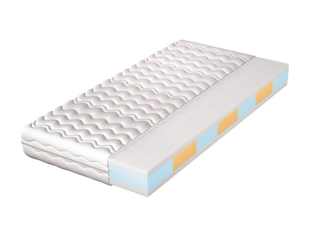 Pěnová matrace 180x200 cm v pratelném snímatelném potahu. Skládá se ze tří vrstev - střed tvoří sedmizónová profilovaná PUR pěna T25, která je z obou stran obložena PUR pěnami T25 v tloušťce 2 cm. Matrace má tak 7 anatomických, optimálně rozložených zón, čímž se lépe přizpůsobí tvaru těla. 1. Zóna hlava: zlepšuje krevní oběh a zabraňuje bolestem hlavy 2. Zóna ramena: uvolňuje zádové svalstvo 3. Zóna bedra: zajišťuje správné držení těla při spánku 4. Zóna pánev: umožňuje udržet pánev v přímce 5. Zóna stehna: napomáhá uvolnění stehenních svalů 6. Zóna lýtka: podporuje ideální oběh krve 7. Zóna chodidla: zajišťuje odpočinek nohou bez nadměrného tlaku na paty. Matrace je hypoalergenní a použití bavlny v potahu matrace podporuje cirkulaci vzduchu a poskytuje dobrou tepelnou izolaci. Je odolná vůči různým druhům tlaku, deformaci a promáčknutí a poskytuje dobrou ventilaci, což ocení lidé s nadměrným pocením. Obě strany matrace mají označení tvrdosti H3 - středně tvrdá. Výška matrace je +/- 16 cm. Barva pěn se může lišit od vyobrazení.Doplňkové parametry