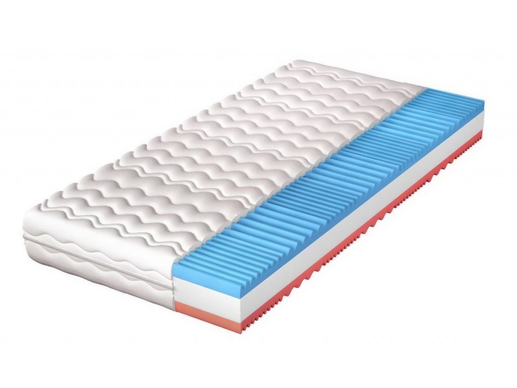Pěnová matrace 120x200 cm v pratelném snímatelném potahu. Skládá se ze tří vrstev - střed tvoří 8 cm PUR pěna T25, která je z obou stran obložena sedmizónovými profilovanými PUR pěnami T25 v tloušťce 3 cm. Matrace má tak 7 anatomických, optimálně rozložených zón, čímž se lépe přizpůsobí tvaru těla. 1. Zóna hlava: zlepšuje krevní oběh a zabraňuje bolestem hlavy 2. Zóna ramena: uvolňuje zádové svalstvo 3. Zóna bedra: zajišťuje správné držení těla při spánku 4. Zóna pánev: umožňuje udržet pánev v přímce 5. Zóna stehna: napomáhá uvolnění stehenních svalů 6. Zóna lýtka: podporuje ideální oběh krve 7. Zóna chodidla: zajišťuje odpočinek nohou bez nadměrného tlaku na paty. Matrace je hypoalergenní a použití bavlny v potahu matrace podporuje cirkulaci vzduchu a poskytuje dobrou tepelnou izolaci. Je odolná vůči různým druhům tlaku, deformaci a promáčknutí a poskytuje dobrou ventilaci, což ocení lidé s nadměrným pocením. Obě strany matrace mají označení tvrdosti H4 - tvrdá. Výška matrace je +/- 16 cm. Barva pěn se může lišit od vyobrazení.Doplňkové parametry