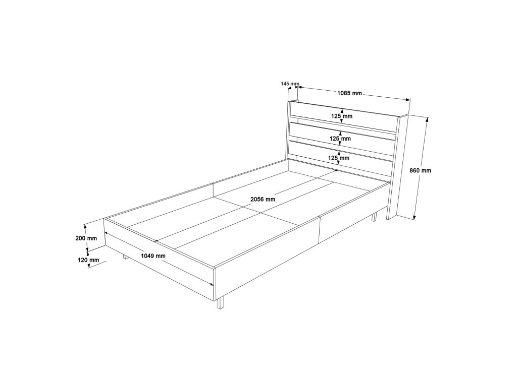 - Jednolůžková postel: 205,6 x 108,5 x 86 cm