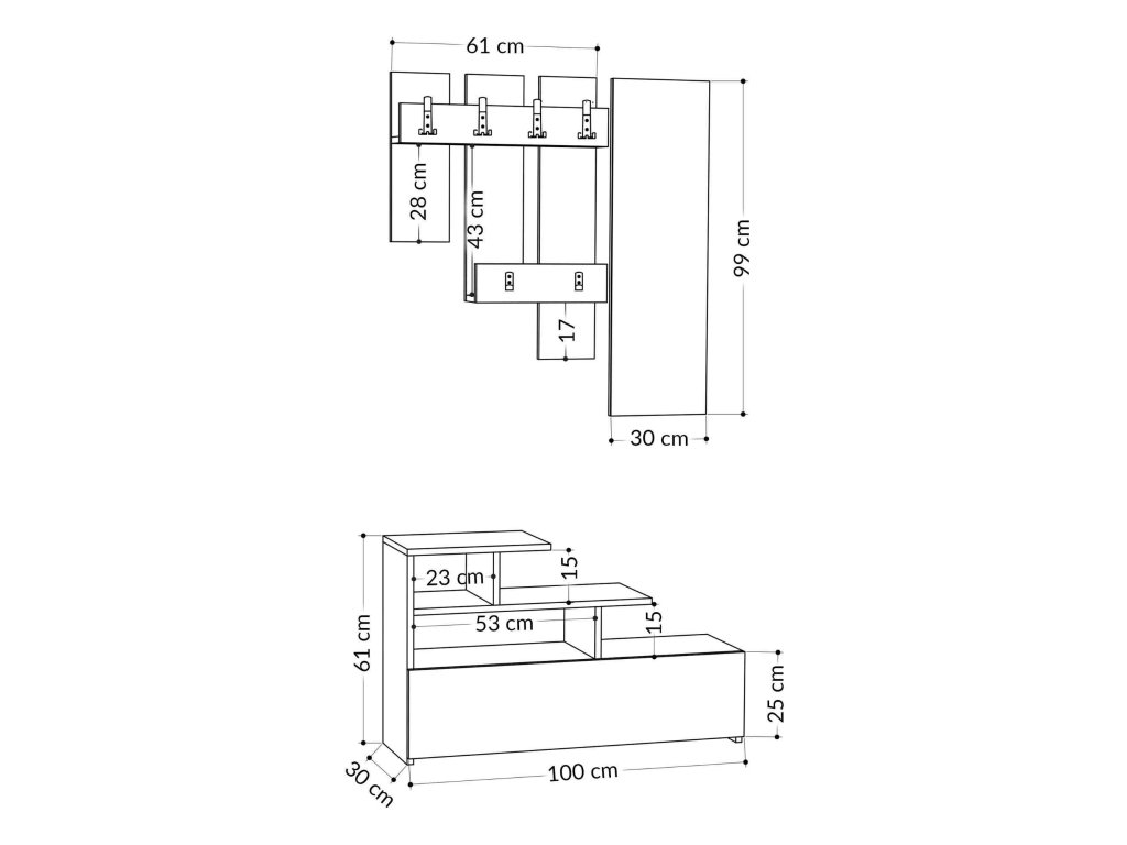 Rozměr: 61 x 100 x 30 cm – kompaktní rozměry pro efektivní využití prostoru