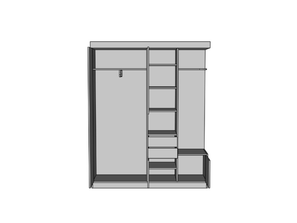 nabízí dostatek úložného prostoru díky 2 prostorným zásuvkám, četným policím a šatní skříni, která umožňuje přehledné uspořádání oblečení, kabátů či doplňků.