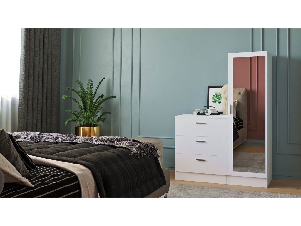 - Sestava obsahuje: Komoda, šatní skříňka se zrcadlem