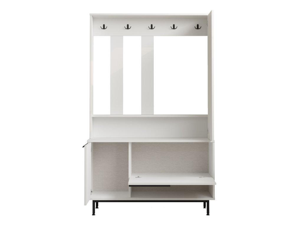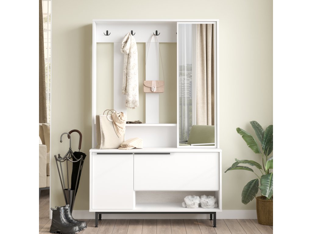 spojuje funkčnost a moderní estetiku. Věšáková stěna poskytuje prostor pro zavěšení kabátů a tašek, zatímco zrcadlo přidává do předsíně více světla a opticky zvětšuje prostor. Botník zajišťuje organizovaný a přehledný úložný prostor pro vaši obuv. Díky svému elegantnímu provedení se sestava hodí do každé moderní domácnosti.
