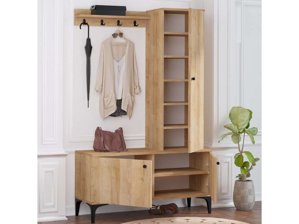 Vychutnejte si krásu tradice, industriální kouzlo a skandinávskou eleganci v jednom kuse. Náš stojan do předsíně je navržen tak, aby uchvátil vaše smysly a pozvedl atmosféru vašeho domova.