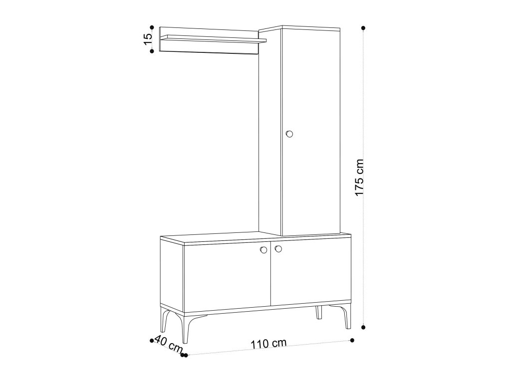 Náš stojan do předsíně lze snadno připevnit na zeď, čímž maximalizujete využití svého prostoru. Jeho kompaktní rozměry o šířce 110 cm, výšce 175 cm a hloubce 40 cm z něj činí ideální volbu i pro ty nejmenší chodby.