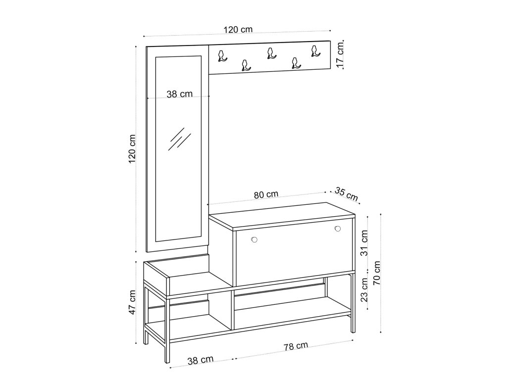 Naše skříňka na boty je navržena tak, aby vyhověla všem vašim potřebám ohledně obuvi. S tloušťkou 18 mm poskytuje vašim botám pevnou oporu a zajišťuje, že zůstanou v perfektním stavu. Prostorné rozměry 120 cm na šířku, 70 cm na výšku a 35 cm do hloubky vám umožní uložit širokou škálu velikostí a stylů bot. Od tenisek po jehlové podpatky, tato skříňka vám pomůže.