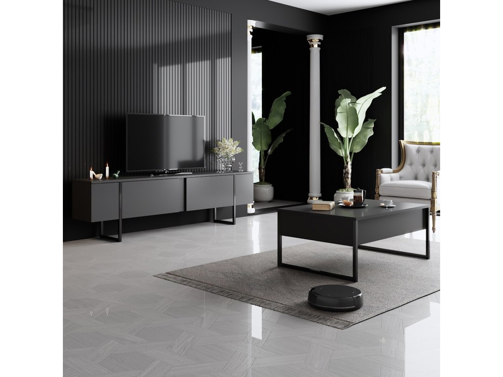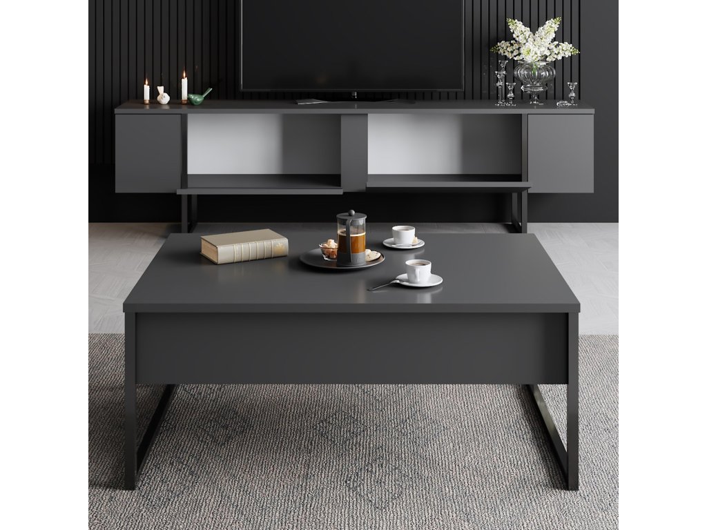 Elegantní design: Elegantní design této sady nábytku dodá vašemu obývacímu pokoji nádech sofistikovanosti. Kombinace antracitové a černé barvy jí dodává moderní a elegantní vzhled, který doplní jakýkoli styl interiéru.