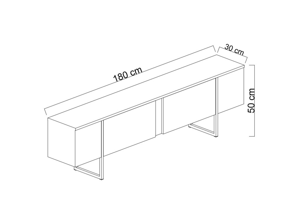 - TV stolek: Šířka: 180 cm, Hloubka: 30 cm, Výška: 47 cm
