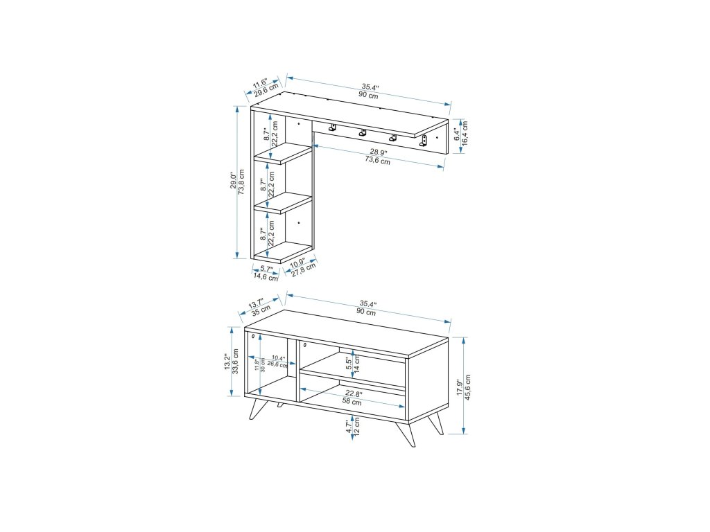 - Skříňka na boty: 90 x 35 x 45,6 cm