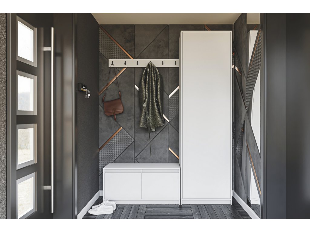 Moderní předsíňová sestava v minimalistickém provedení promění Vaši vstupní chodbu ve stylový a funkční prostor. Nabízí dostatek úložného místa a díky jednoduchým liniím působí moderně a vzdušně. Součástí předsíňové stěny je: Šatní skříň. nízký botník a věšákový panel. Rozměry viz obrázky. Další parametry a vlastnosti - materiál: LTD o tloušťce 16 mm, barevné provedení: bílá mat (nymfeja alba). Rozměry: šířka 150 cm / výška 205 cm. Nabízíme i vetši rozměr i s jinou barvou. Dodáváme v demontovaném stavu.Doplňkové parametry