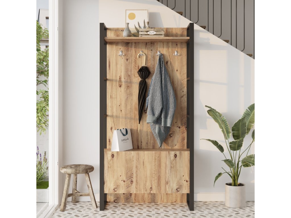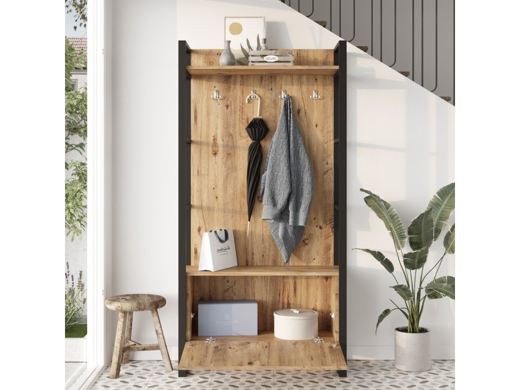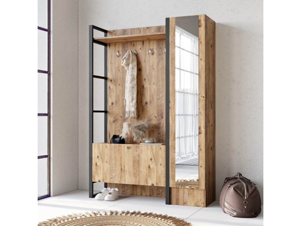Vyhotovená z kvalitního LTD a kovu, předsíňová sestava kombinuje eleganci s trvanlivostí. Barva borovice přidává přírodní nádech, zatímco loftový a industriální styl přinášejí do vašeho interiéru moderní vzhled s dotekem minulosti.