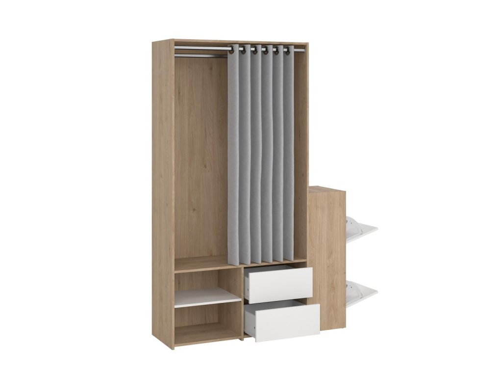 Série šatních skříní Harmony přináší praktické a originální řešení úložného prostoru. Dveře skříně jsou nahrazeny textilním závěsem. Skříň je vyrobená z kvalitního a snadno udržovatelného lamina. Skvěle se hodí do dětského nebo studentského pokoje, předsíně, kanceláře i domácí pracovny.