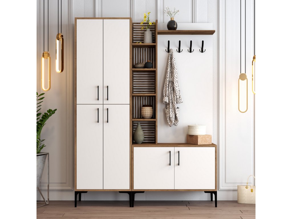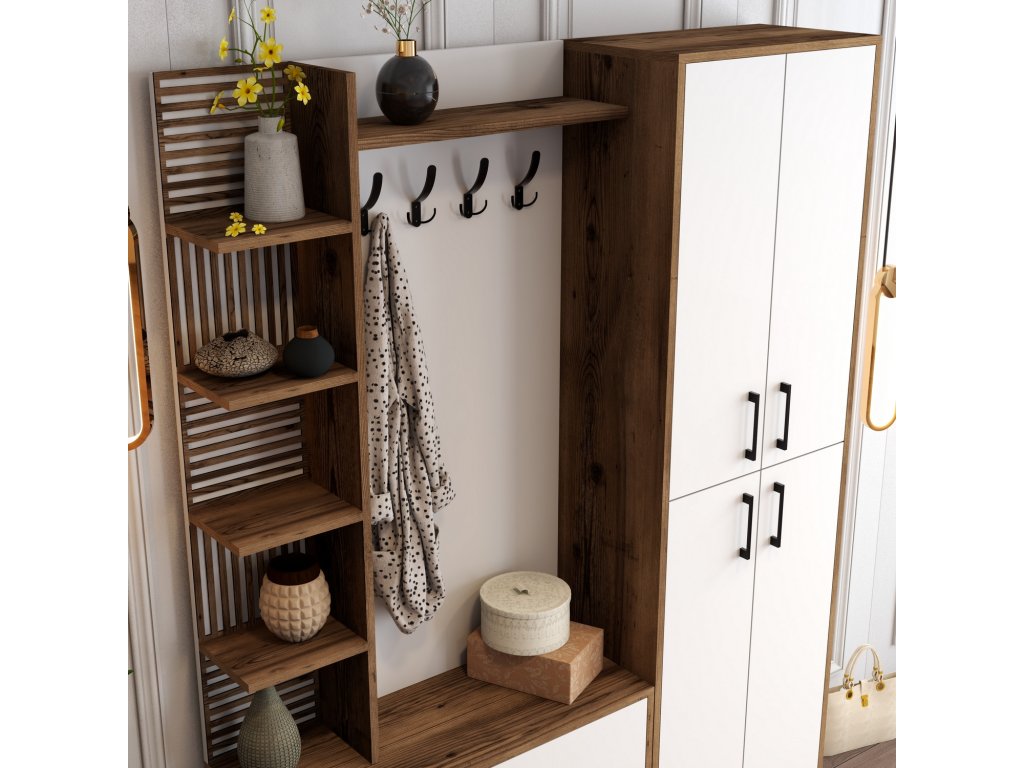 Tento stojan do předsíně je vyroben ze 100% dřevotřísky s melaminovým povlakem a je vyroben tak, aby vydržel. Kovové komponenty zajišťují odolnost a stabilitu, takže se můžete spolehnout, že tento kus obstojí ve zkoušce času.