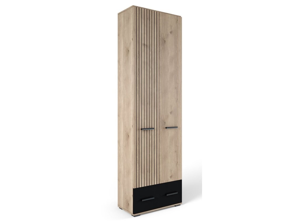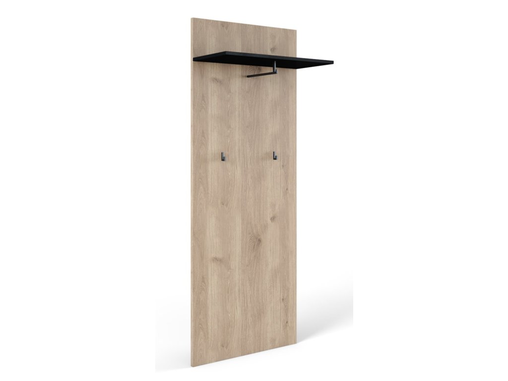 O stylový design Vaší vstupní části se postará moderní předsíňová sestava Kombinace moderních barev a předních dvířek imitujících trendové lamely jí dodává jedinečný charakter. věšáky upevněné na věšákovém panelu.