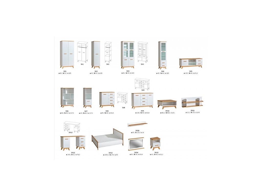 Sven zaujme skandinávským stylem, svojí jednoduchostí a elegancí. Systém se skládá z mnoha komponentů, které můžete libovolně kombinovat.Vyráběn je v kombinaci barev Dubu nash a sosna andrsen. Nábytek je vyroben z kvalitní laminované dřevotřískové desky 16 mm a s ABS hranou, která zajišťuje trvanlivost a dlouhou životnost. Originální úchyty a nožičky v barvě dub Nash dodávají nábytku osobitý vzhled. Nábytek je dodáván vdemontu s montážním návodem.