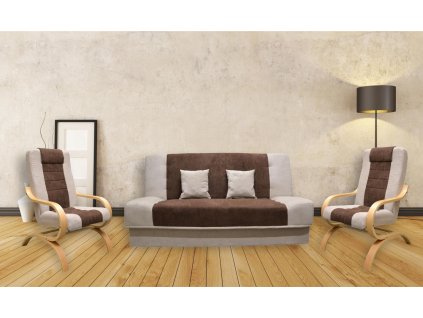 Sedací souprava Palmíra 3F+1+1 hnědá/dřevo buk
