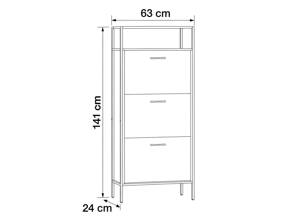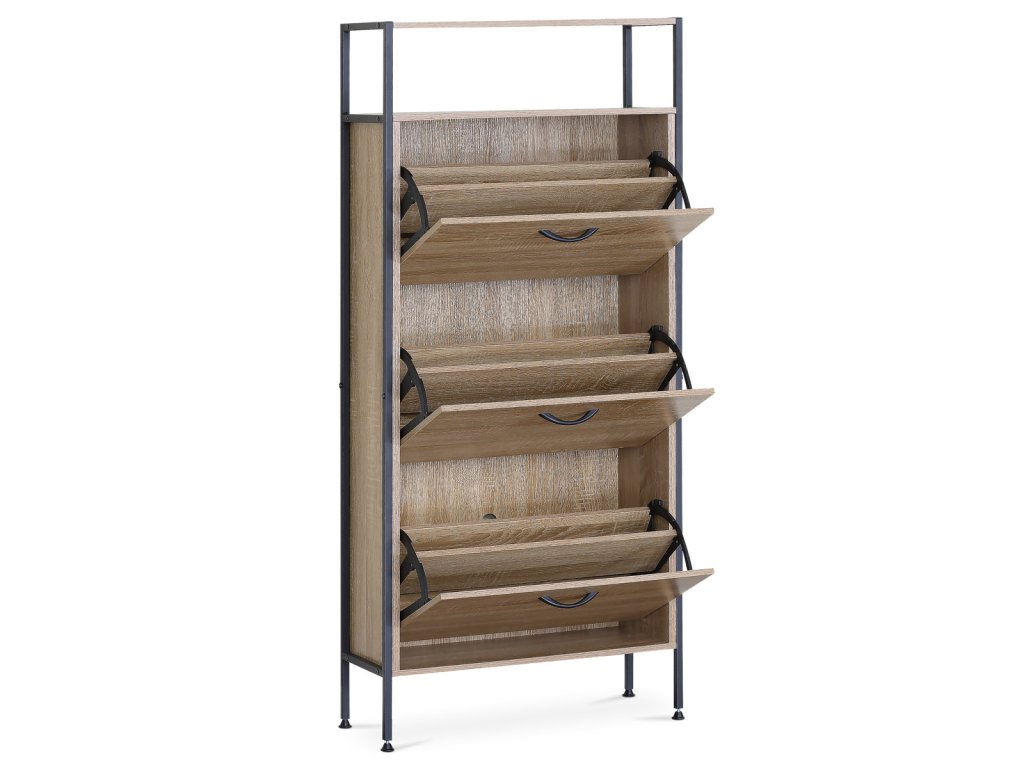 Botník, 3 přihrádky, 2 police, dekor dub, MDF