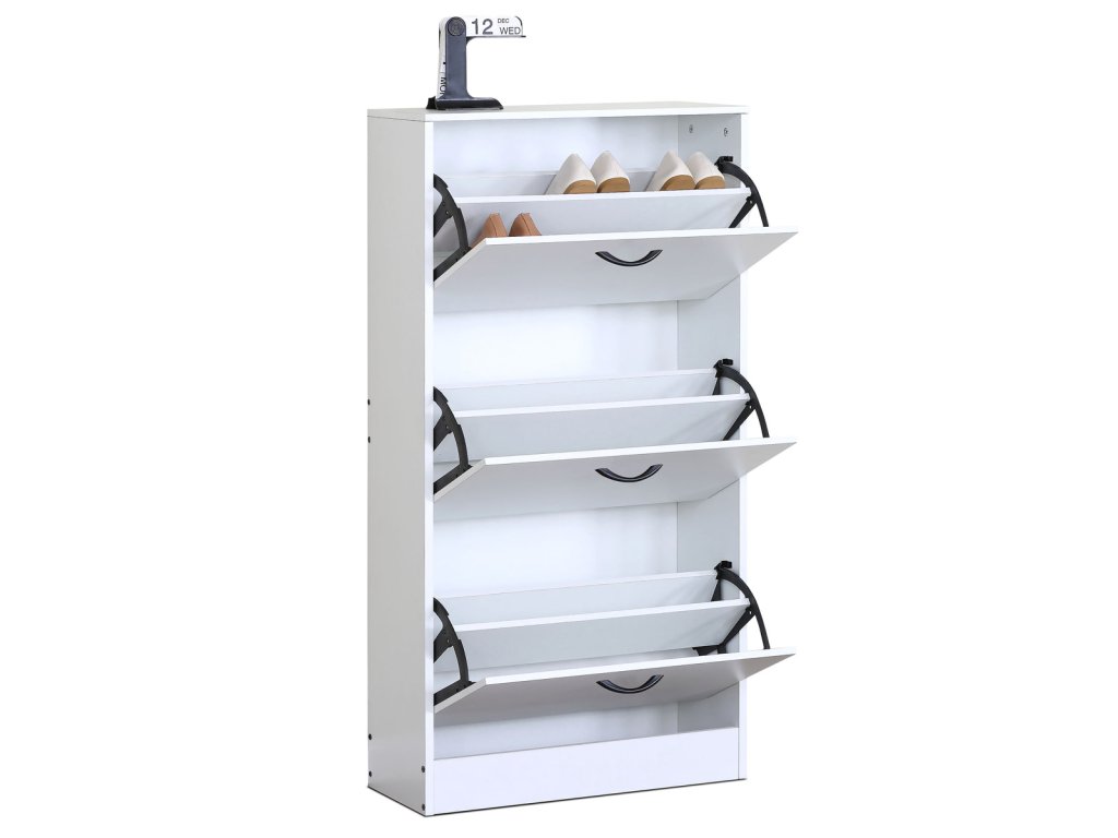 Botník, 3 přihrádky, bílý, MDF