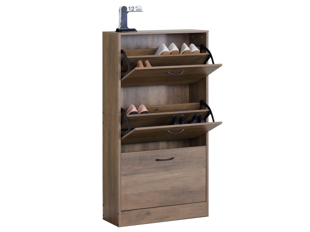 Botník, 3 přihrádky, dekor jilmové dřevo, MDF