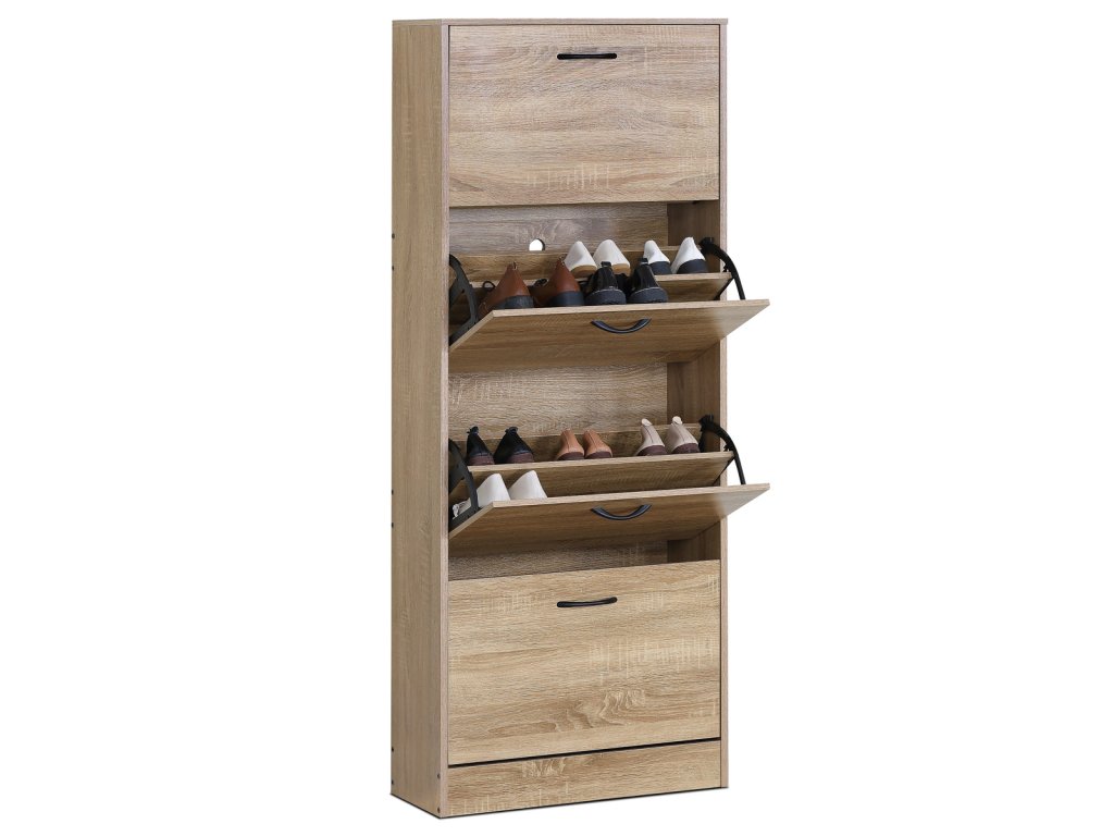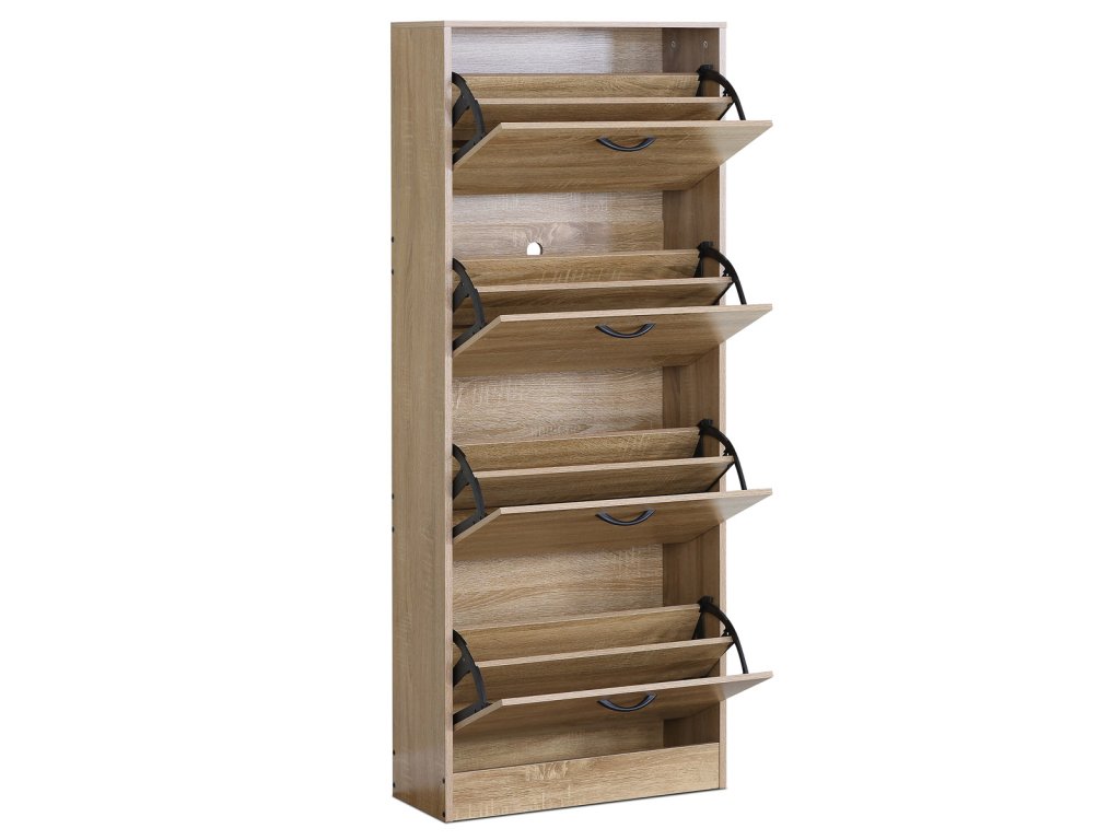 Botník, 4 přihrádky, dekor dub, MDF