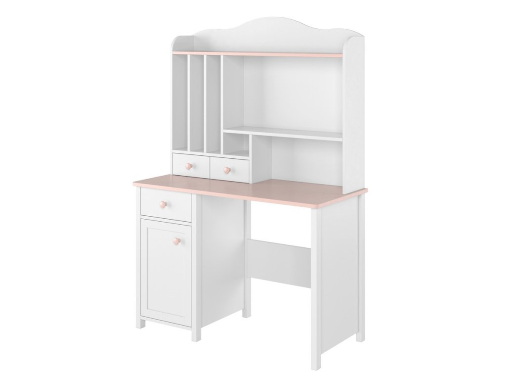 Nástavec k psacímu stolu. Tento elegantní nábytek dodá romantickou atmosféru pokojíčku malé princezny i větší slečny. Nástavec je vyroben z desky LTD v barvě bílé s doplňkovou barvou růžovou. Nástavec je možné kombinovat s psacím stolem 03 nebo komodou 05, upevňuje se úchytkami v zadní části stolu (komody). Úchyty zásuvek jsou plastové v růžové barvě. Dodáváme v demontovaném stavu.Dodatočné parametre