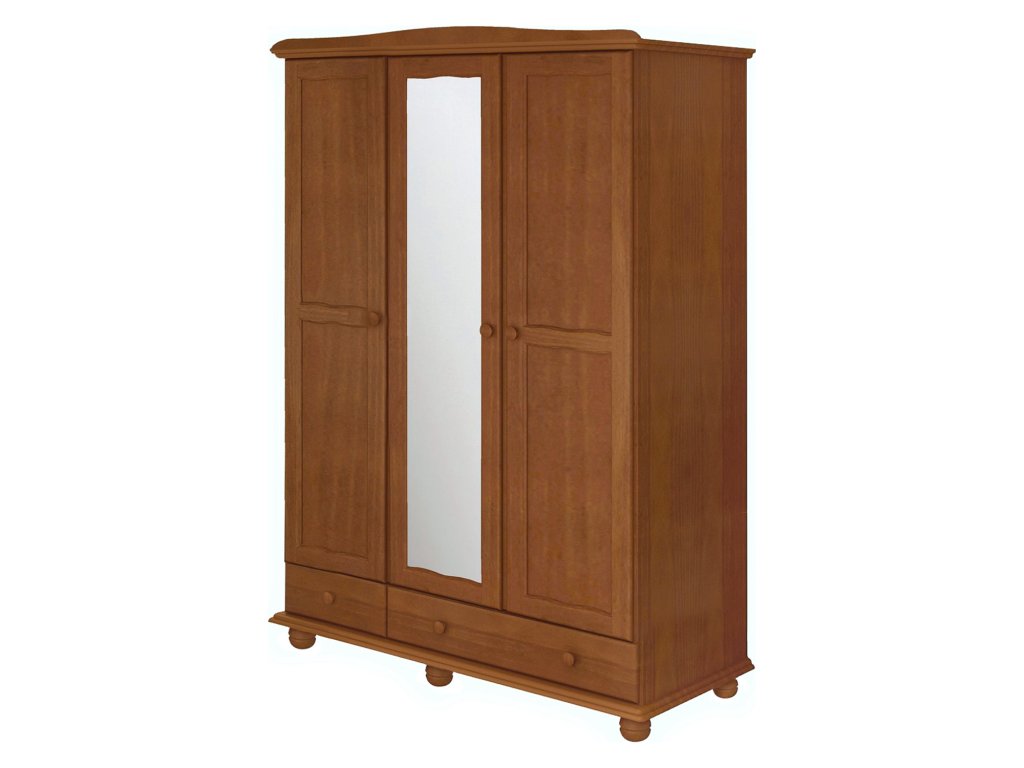 materiál masiv borovice, barevné provedení hnědý lak prostor dělený 1:2, na středních dveřích zrcadlo v levé užší části 3 police, v pravé šírší části šatní tyč a police v dolní části 2 zásuvky s kovovými pojezdyDodatočné parametre
