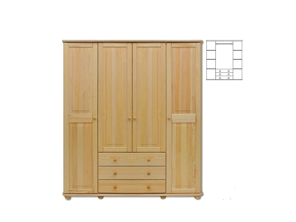 Praktická šatní skříň je vyrobena z kvalitního borovicového dřeva, které přinese do Vaší domácnosti tu správnou přírodní atmosféru a vůni dřeva. Základní borovicové dřevo je bez moření, můžete si však objednat i moření olše, dub, grey nebo ořech za 10% příplatek. Jednotlivé části nábytku tohoto výrobce lze různě kombinovat, čímž docílíte dokonalé harmonie a přitažlivého vzhledu Vašeho domova. Poněvadž má dřevo povrchovou úpravu proti škůdcům a vy budete mít zájem namořit si nábytek sami, napište do poznámek k objednávce - "Bez povrchové úpravy".Dodatočné parametre