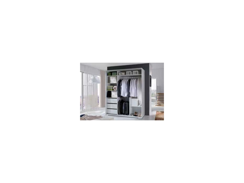 Skříň je vyrobena z kvalitního lamina a díky svému vnitřnímu uspořádání nabízí dostatek úložného prostoru. Posuvné dveře šetří prostor a zrcadla na dveřích ho opticky zvětší. Vnitřní uspořádání skříně je vyobrazeno na fotografii. Součástí jsou šatní tyče, police a 3 zásuvky. Skříň je dodávána v demontu. Součástí skříně je montážní plánek včetně všech potřebných spojovacích materiálů.