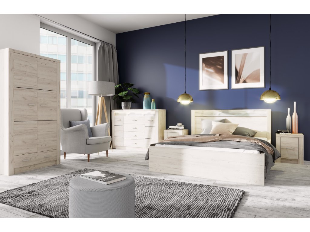 Komoda ze sektorové řady INDIANAPOLIS. Komoda obsahuje 4 zásuvky, za dvířky jsou 2 police. Systém INDIANAPOLIS je exkluzivní kolekce navržena v moderním duchu. Vsazením LED osvětlení do ozdobné rýhované lišty, které najdete v naší další nabídce k dokoupení, je zvýrazněn rustikální vzhled masivního dřeva. Celá řada se vyznačuje elegancí a jednoduchými tvary, které zaručují plné využití prostoru. Nábytek je vyroben z kvalitního lamina s ABS hrany ( 0,5-0,8 mm ). Barevné provedení jasan bílý. Dodáváme v demontovaném stavu.Dodatočné parametre